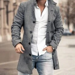 Plain Pocket Lapel Single-Breasted Long Sleeves Men’s Jacket